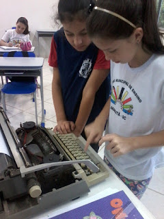 datilografia onde os alunos puderam manusear e também pesquisar sobre sua